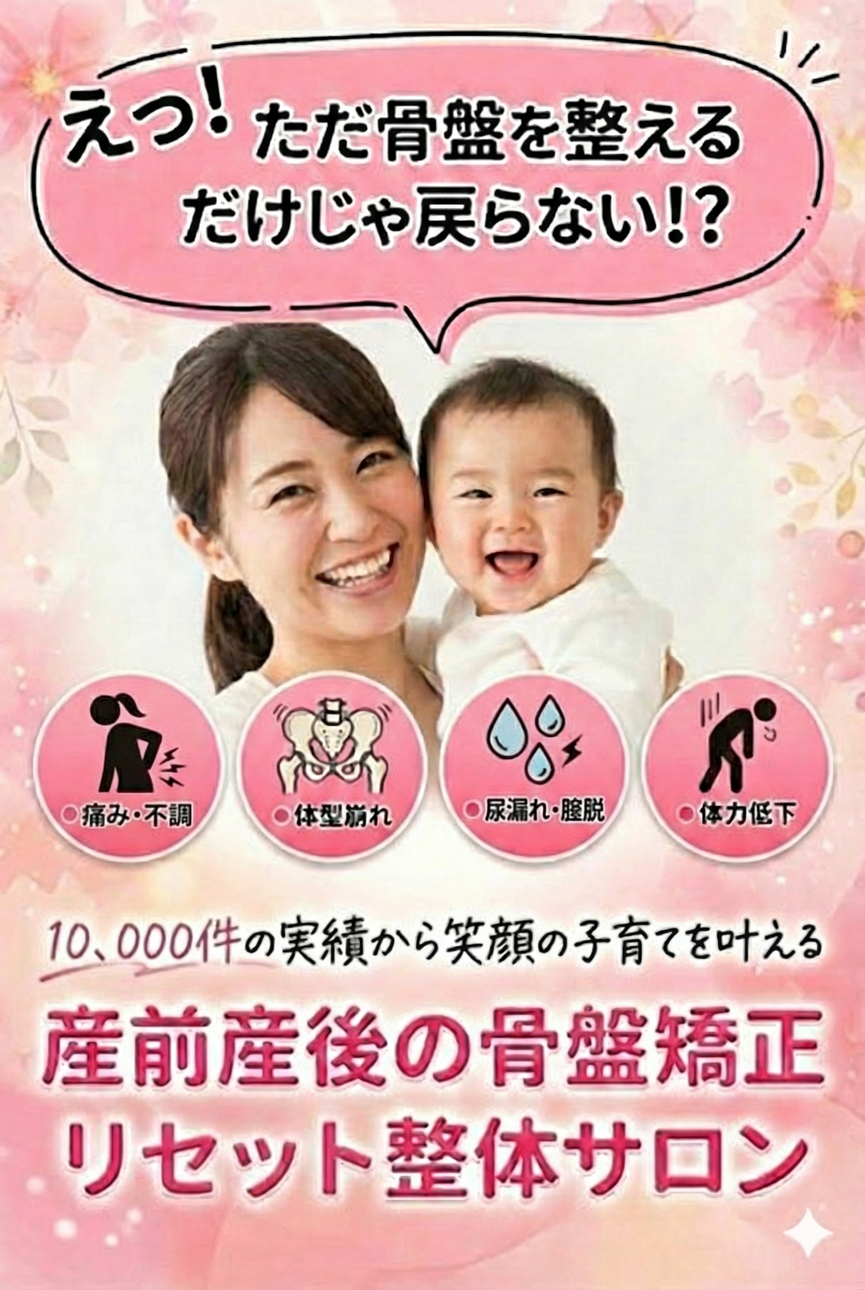 妊娠・出産を経て、女性のからだは驚くほどに変化します。そのケアには、より専門的な知識が必要です。 産後の骨盤矯正というと「開いた骨盤をもとに戻す」「外から力をかけて形を整える」といったイメージが根強く残っています。 ですが、実際には自分の筋肉を正しく使える、身体の内側から骨盤を支える力を取り戻すといった、機能改善が必要になります。